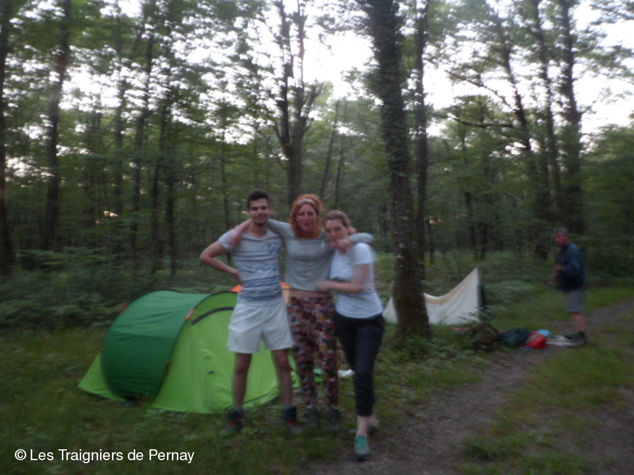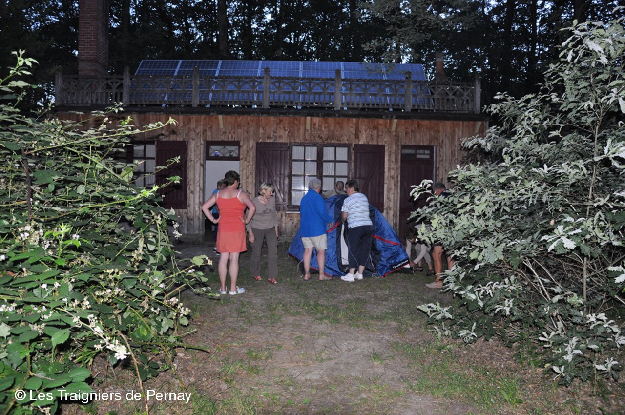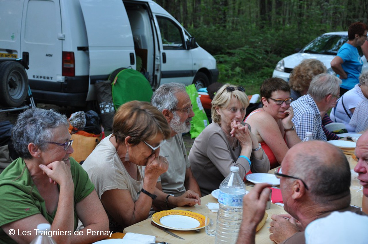 Au bivouac, dans le parc des Rouchoux, ils furent rejoints, entres autres, par les bénévoles de la logistique pour partager le repas du soir.