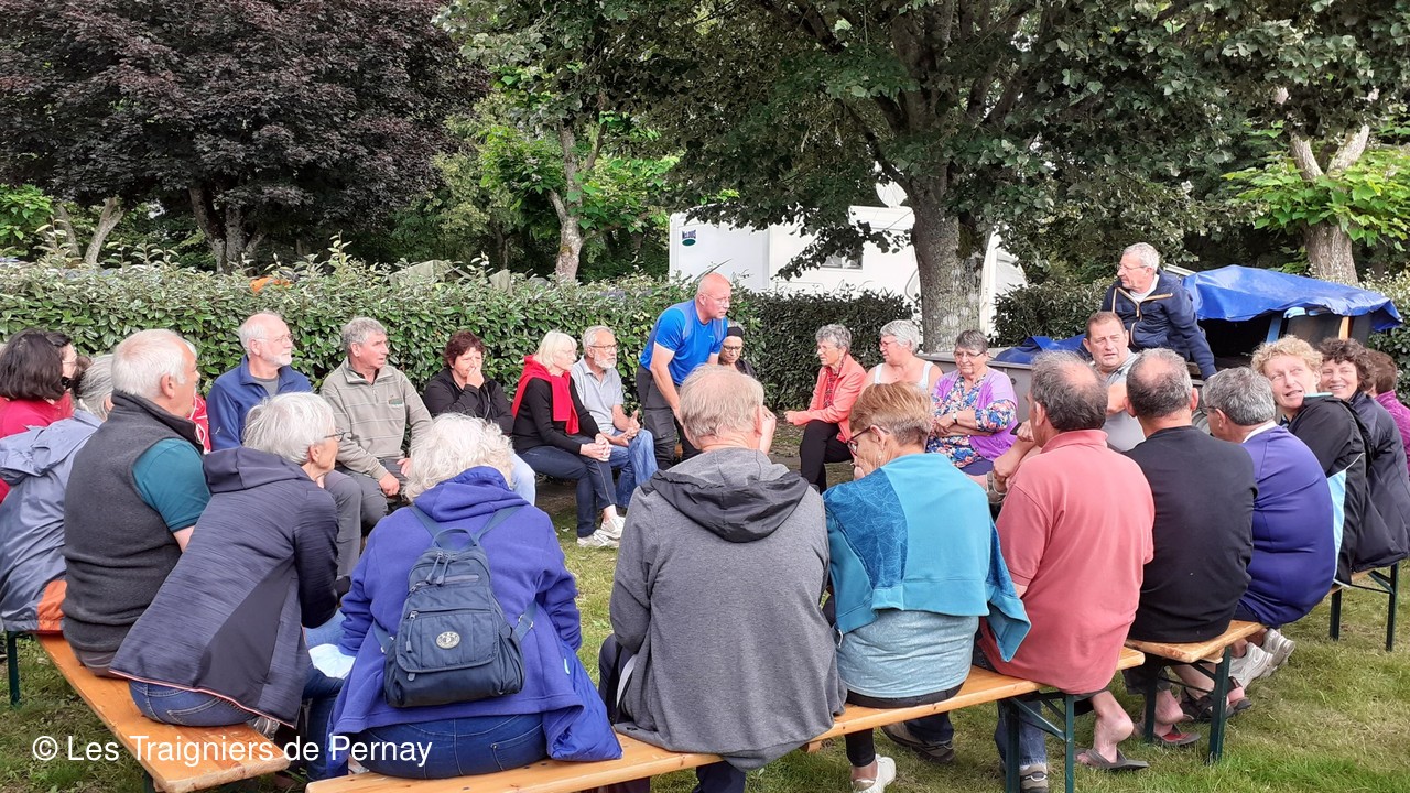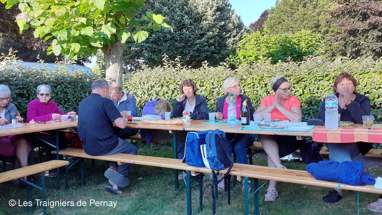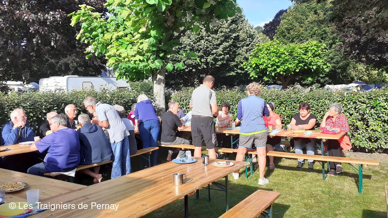 Le samedi 10 juillet, rendez-vous donné à Pernay à 6h30 nous avons rejoint en car le lieu de départ du rando raid. Arrivés à Coëmont (Vouvray-sur-Loir 72) nous avons parcourus les verts chemins sarthois. Pour cette 5ème édition, parmi les 22 participants, 5 le faisaient pour la première fois. Les tentes installées à Vaas, nous avons pu reprendre des forces avec le repas préparé par les cuisinières du club saupoudré d’une animation musicale.