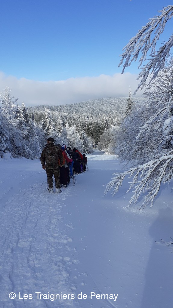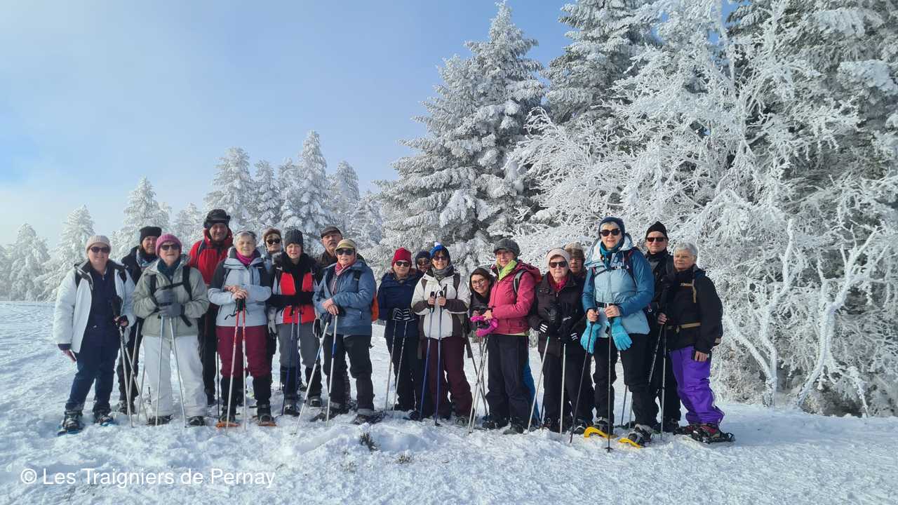 La présence de 3 guides locaux Vinciane, Yves et Pierre leur a permis de faire des groupes de niveaux différents ainsi tous ont pu en profiter. Ils en sont revenus enchantés, la tête et les yeux pleins de souvenirs de magnifiques paysages enneigés de ces terres auvergnates. Pour la prochaine sortie, leurs pas ou plutôt le car les conduira dans le Morbihan pour faire du longe-côte et de la randonnée .