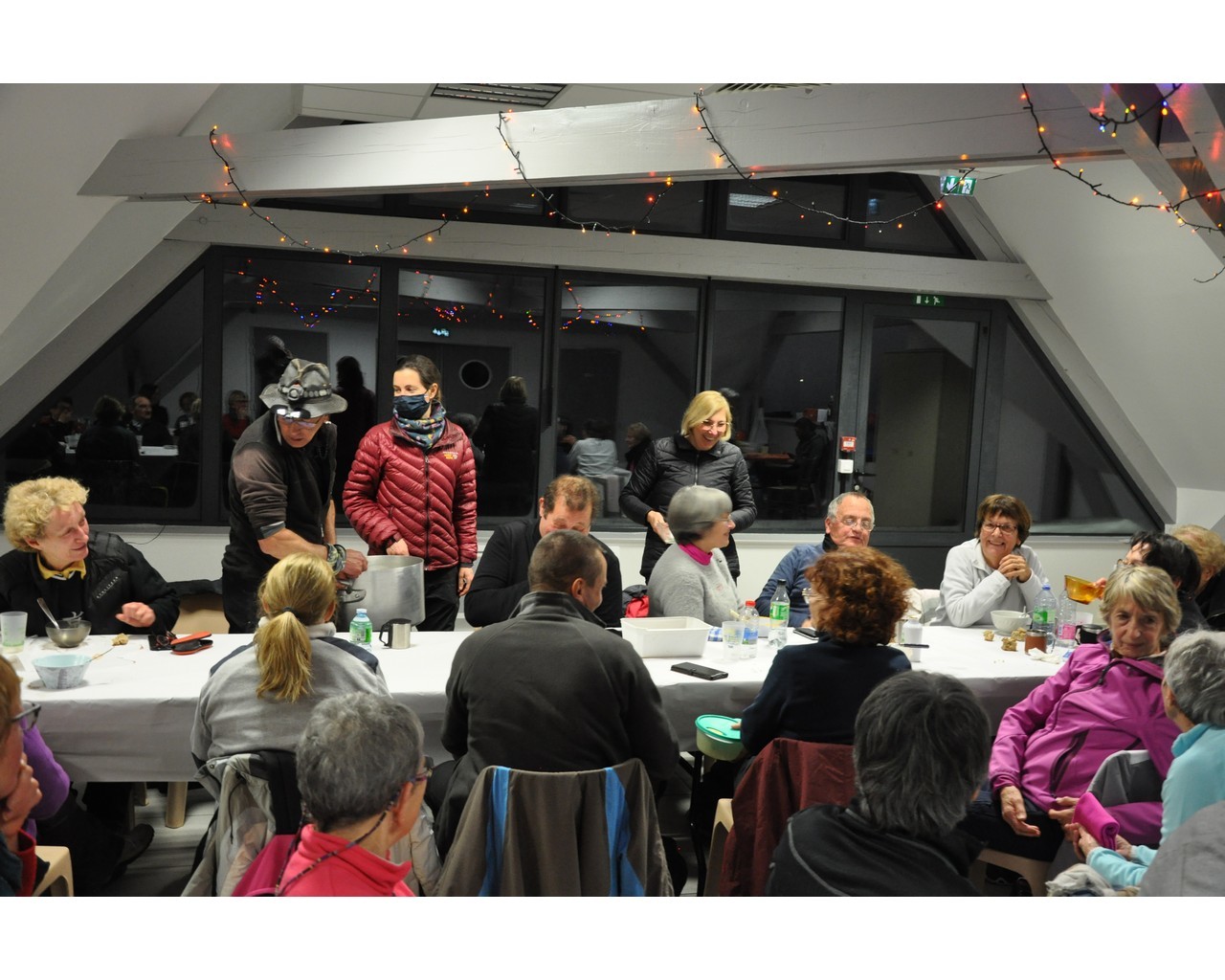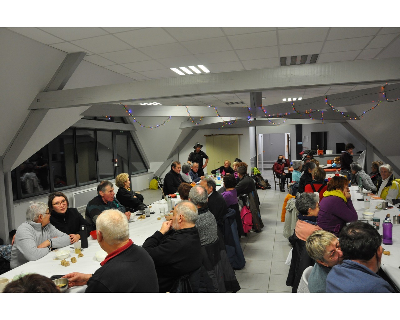 Dès leur arrivée à Picherande, ils sont partis pour une balade nocturne en raquettes, suivi du repas du berger préparé par Yves notre guide référent.