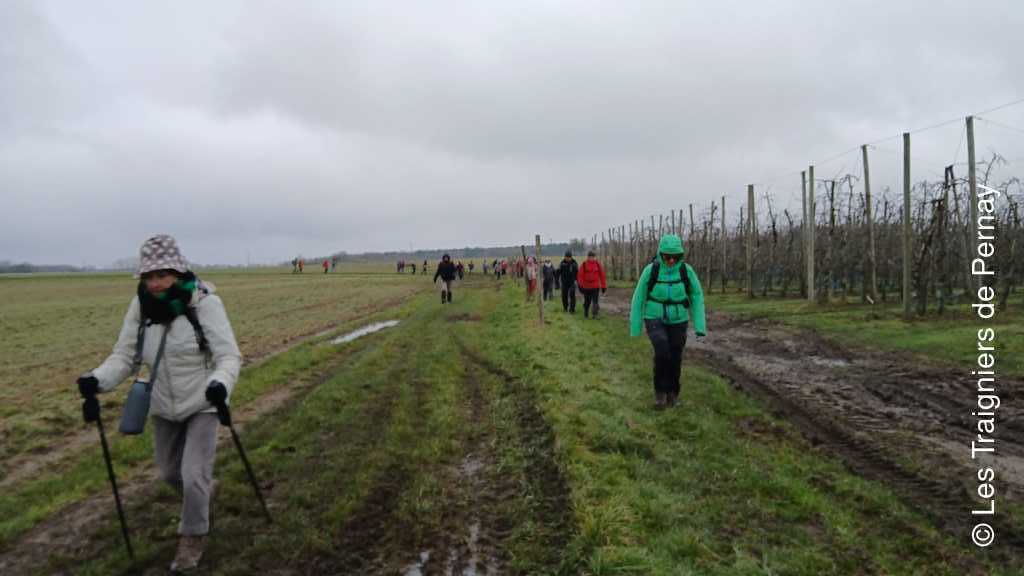Le matin nous avons eu quelques flocons de neige ce qui a arrêté quelques marcheurs, pas de pluie ni de neige pendant la randonnée. Les sentiers étaient plutôt gadouilleux mais la galette et le vin chaud servis au ravitaillement ont ragaillardi les participants.